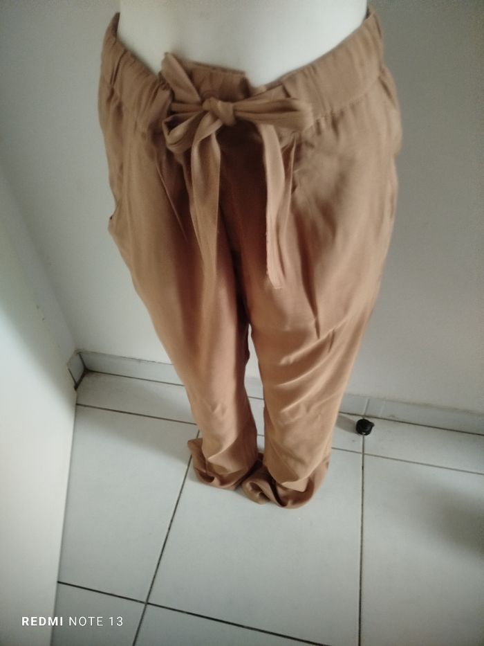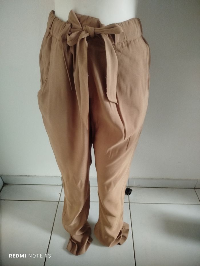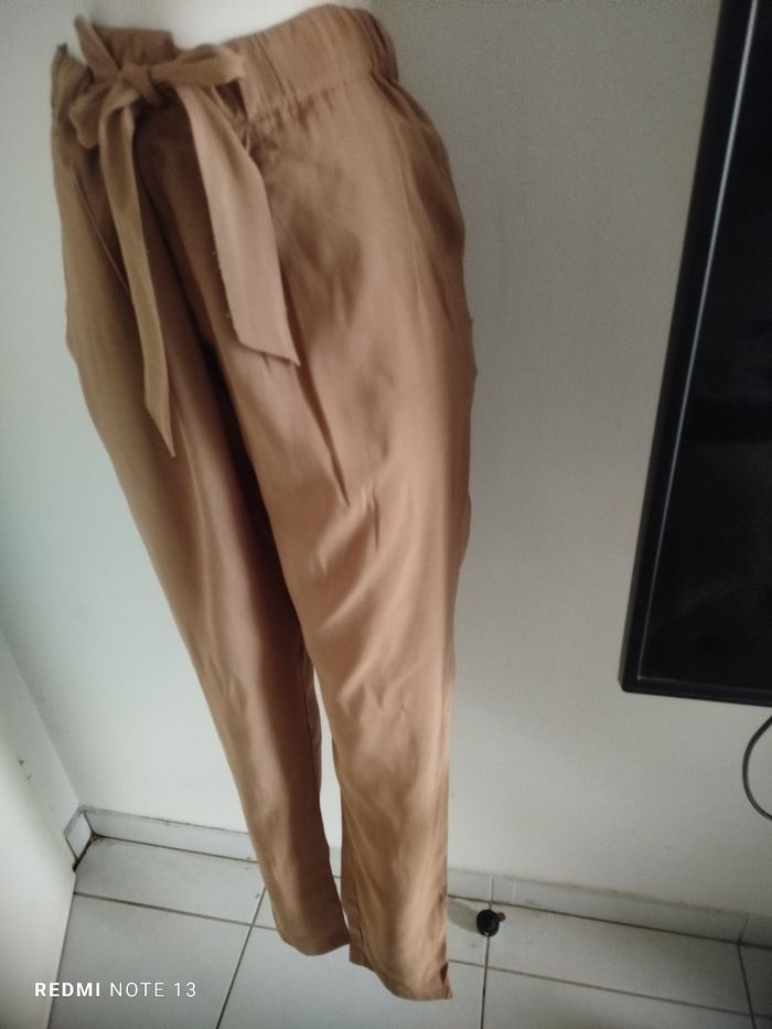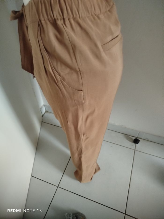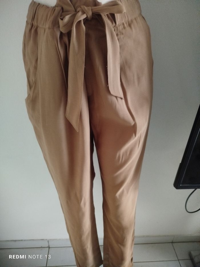 #kytie42femme. Pantalon taille 42 de marque H&M Divided taille élastique avec ceinture ruban 🎀 zippé avec un bouton poche avant fausse poche derrière souple et fluide beige mesure de la taille