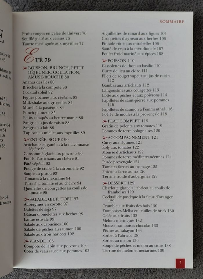 Coquelets aux châtaignes, langue de veau sauce gribiche, punch Planteur, salade aux trois haricots, pêches au sabayon, pavés d'autruche au poivre vert, perdrix braisées au chou, choux de Bruxelles aux châtaignes ou profiteroles au chocolat..