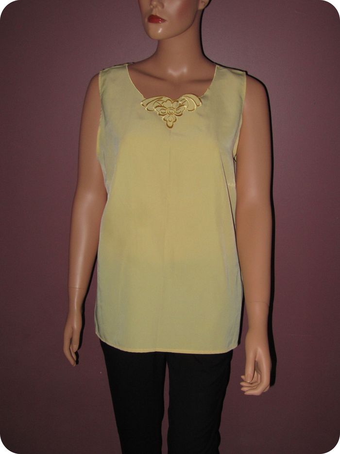 Bonjour, je vends un débardeur fin. Couleur jaune (or). - Broderie Marque : Zampara Paris ( 100% Polyester ) Taille : 40 Très bon état ! Prix : 3€