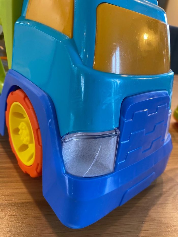 Un camion de transport d'éveil, avec effets sonores et lumineux pour développer l'imagination et stimuler l'éveil de bébé.