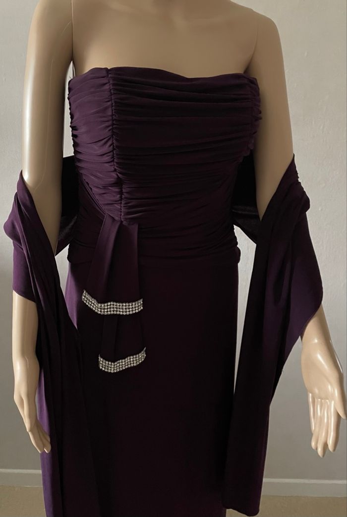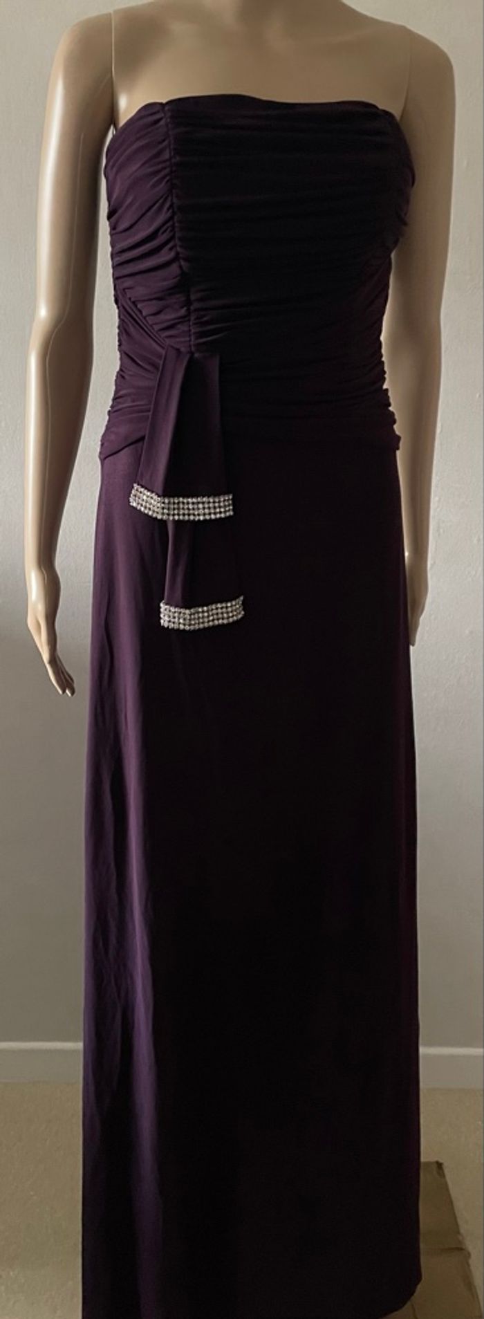Robe élégante de couleur prune/violet profond, idéale pour les événements habillés.Coupe longue et fluide, très flatteuse pour la silhouette.
