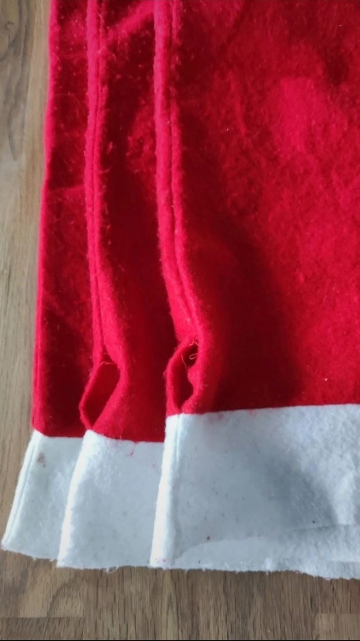 Lot de 5 housse de chaises de Noël Défauts : - Tâches sur une seule housse - Un point a faire a la couture comme vu sur photo. D'autres articles de Noël sur mon dressing.