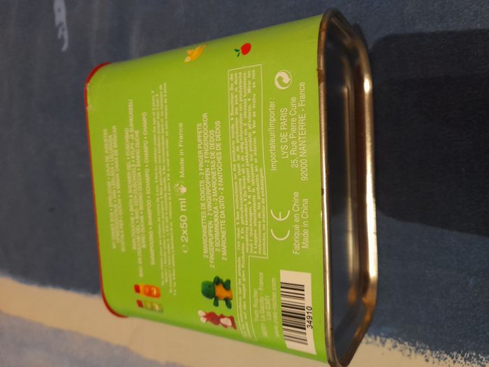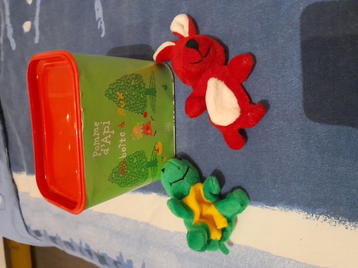 Ma boîte à jeux 13 cm x 7,5 cm x 11 cm avec 2 marionnettes de doigts 9 cm Pomme d'Api Yves Rocher 5 euros
