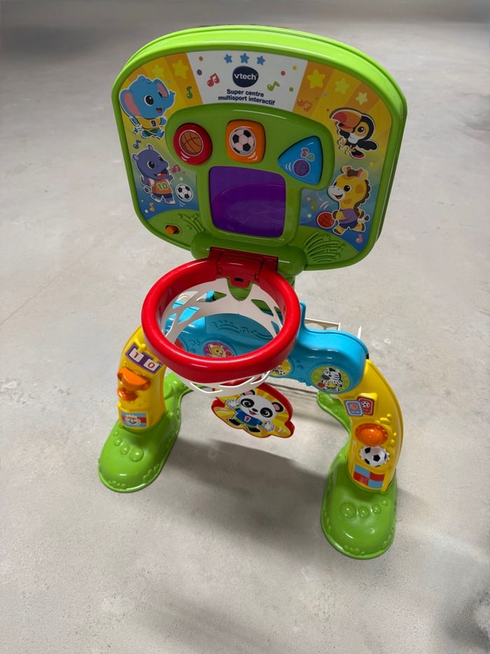 INCLUS : la structure de jeu contient 1 ballon de foot, 1 ballon de basket, 1 balle, 4 chansons et 18 mélodies et une voix entraînante et des animations pour encourager Bébé