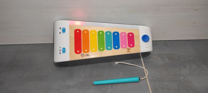 Xylophone tactile baby Einstein Hape Très peu servi donc en excellent état Juste j'ai coupé le fil qui relié le xylo au stylet car ma fille le prenant de la main gauche il était trop court ❗Vendu sans piles ❗