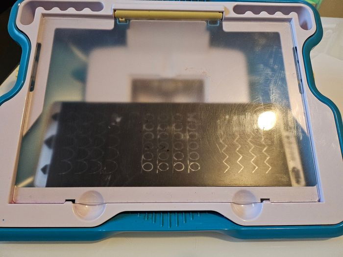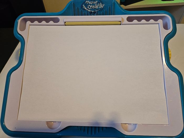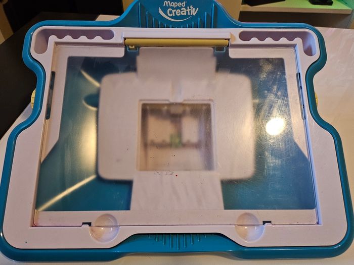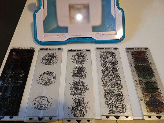 Lumi'board de Mapped pour apprendre à dessiner. En bon état, quelques traces de feutre sur le support. Certaines fiches sont à faire glisser manuellement. Prévoir le changement de piles.
