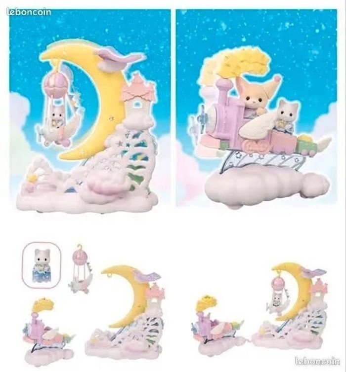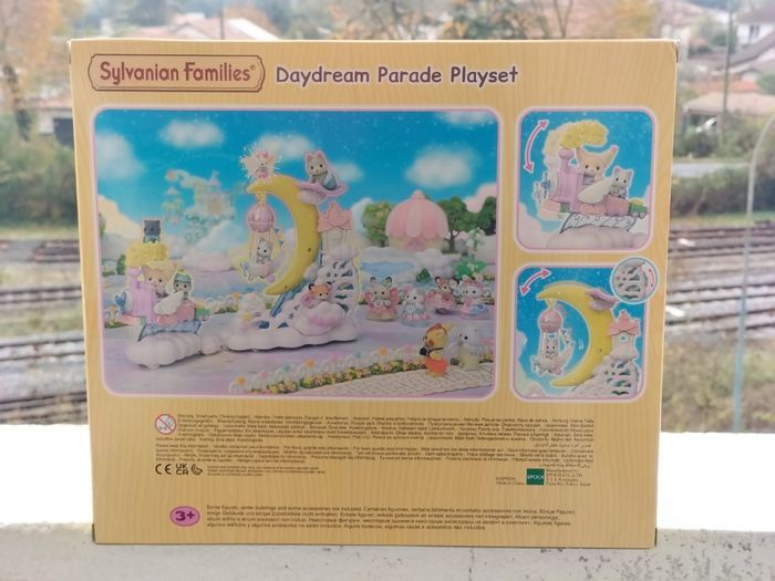 SYLVANIAN FAMILIES COLLECTION 2025 - 4 / 9 ANS. MIXTE- SET PRÊT-À-JOUER. Vous êtes intivé dans la Parade des rêves où le bébé Chat Latté Nicolo ouvre les portes du monde des rêves ! - SET 5816 : LA PARADE DES RÊVES. Inclus: 1 figurine Chat Latté, 1 locomotive ailée sur son nuage à roulettes, 1 lune sur son nuage à roulettes, 1 avion-montgolfière. Ce Set est composé de 2 parties : La Locomotive ailée sur son nuage qui tracte la Lune et sa constellation d'activités et d'attractions pour les bébés Sylvanian avec notamment l'Avion-montgolfière suspendu, le Tapis volant ou encore la Roue de la nuit qu'on peut faire tourner pour avoir des étoiles filantes Connectez le train🚂 et la lune 🌛 pour faire rouler ensemble, ou jouer séparément avec la lune 🌛. Tournez la molette pour faire bouger la lune Le Montgolfière du bébé Chat Latté se décroche de la lune et peut être utilisé séparément. Faites monter et descendre le train 🚂 selon vos envies. Prenez part à la Parade des rêves Sylvanian Families ! COFFRET À 28 € Un ajout très intéressant pour tous les fans âgés de plus de 3 ans. Parfait Cadeau pour un Anniversaire.