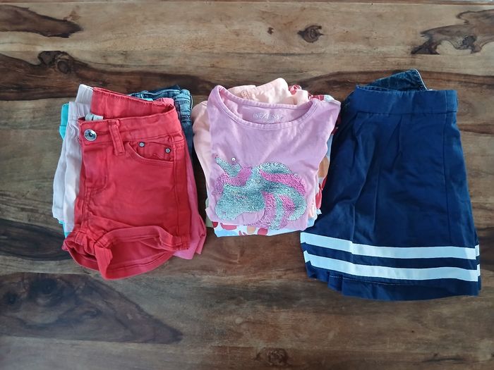 Lot vêtements fille printemps été 5 ans 4 shorts 2 jupes 1 salopette jupe 1 leggin court 5 t-shirts manches courtes Différentes marques: orchestra, sergent major, in extenso,kiabi, décathlon,