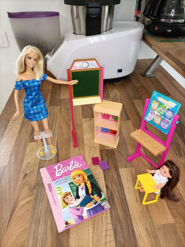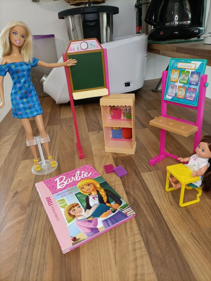 Lot Barbie Maîtresse d'école - Mobilier + 1 barbie + 1 enfant + 1 livre + accessoires