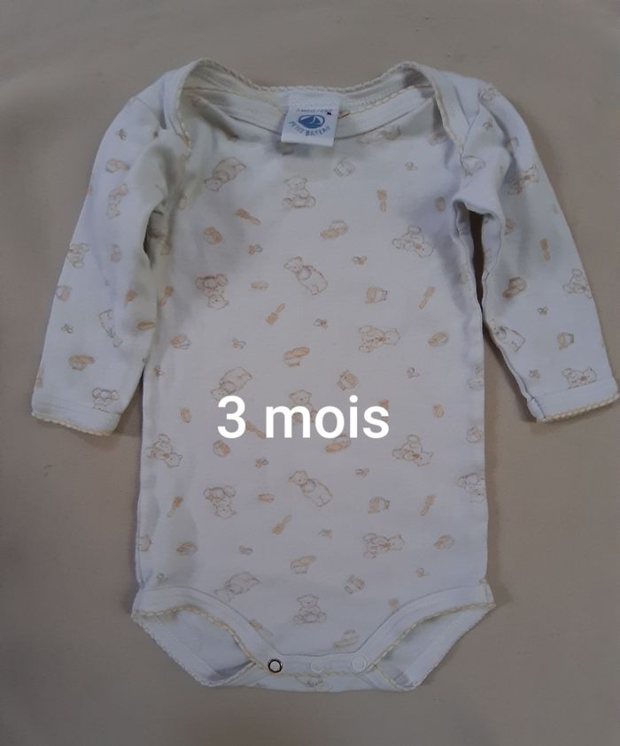 body à manches longues, de la marque Petit Bateau, en taille 3 mois