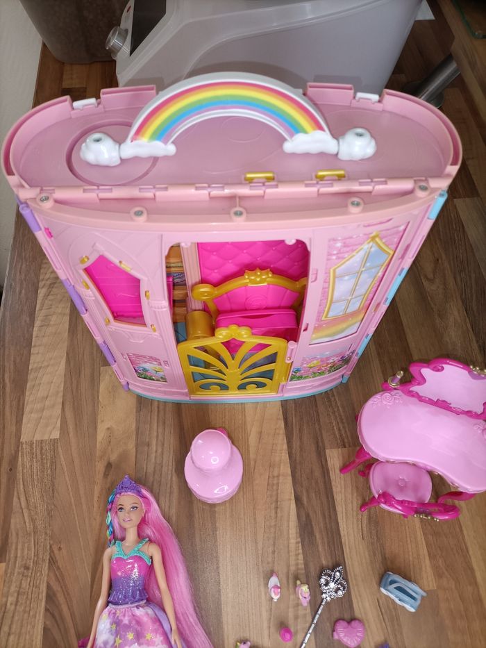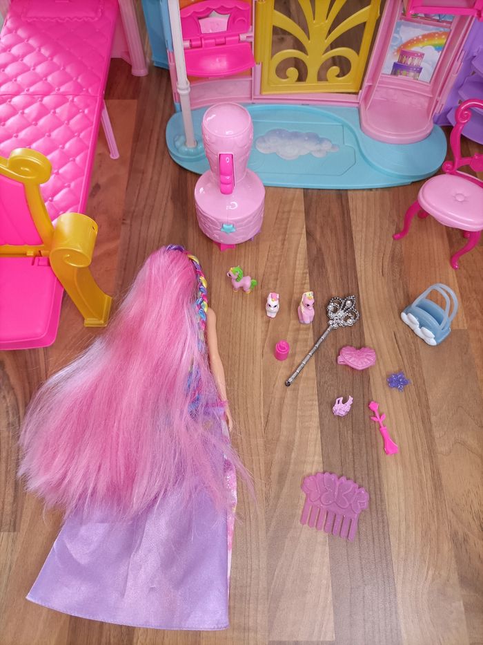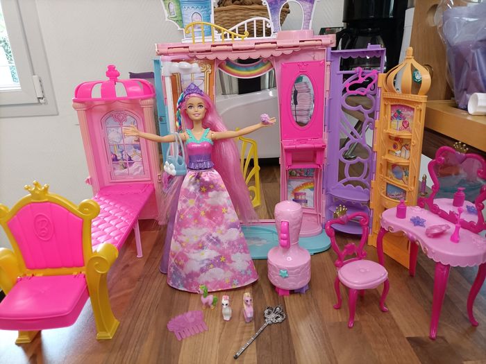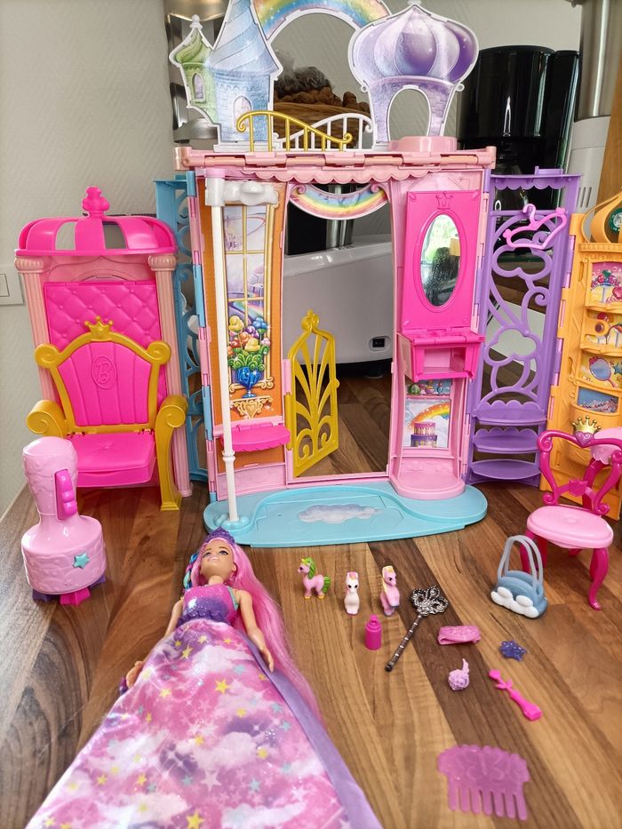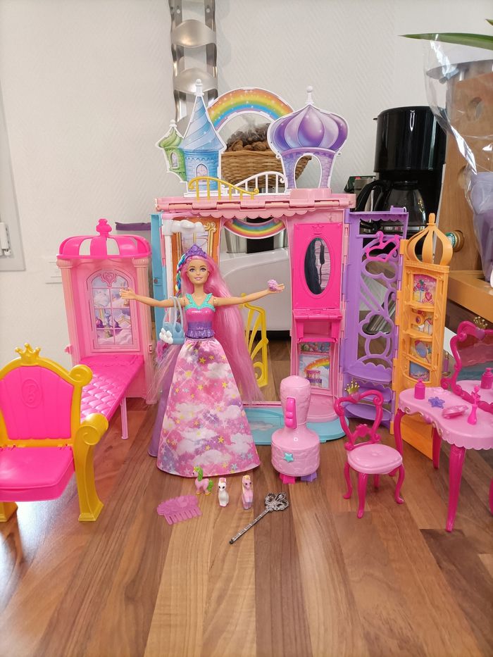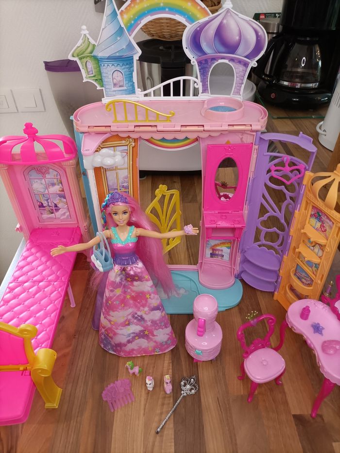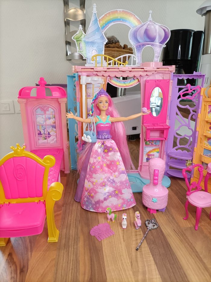 Château arc en ciel Dreamtopia Barbie + 1 barbie à tresser + meubles et accessoires - photo numéro 1