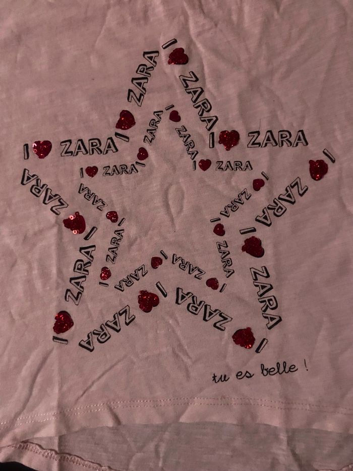 Tee-shirt »Zara »rose pâle et rouge pailleté,taille 4 ans.
