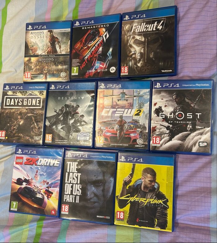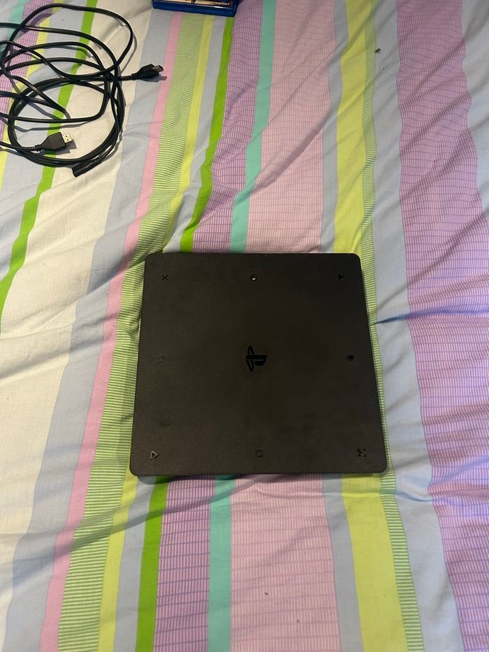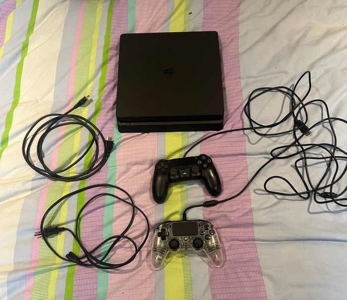 Play station 4 noire 1 to avec deux manettes et 11 jeux, fonctionne parfaitement, vendu avec sa boîte d’origine.