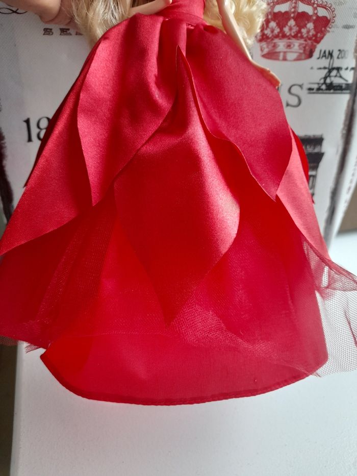 Poupée Barbie joyeux Noël 2022. En parfait état. Elle porte une superbe robe rouge faite de tulles et de satin. Barbie signature Avec boucles et chaussures.