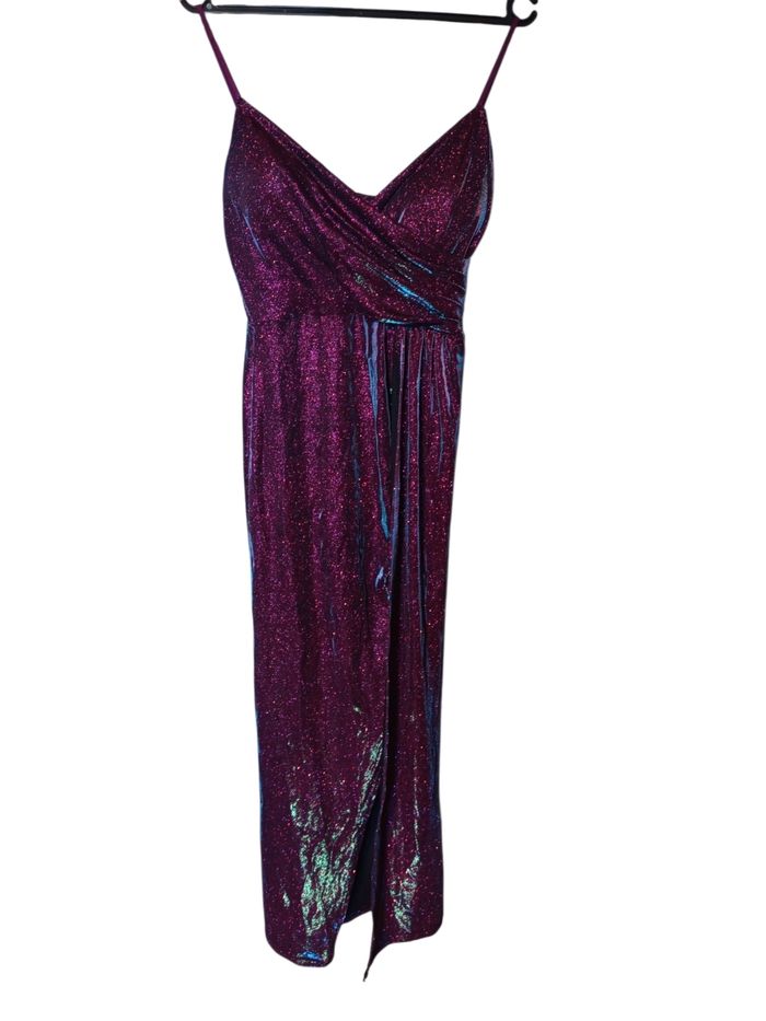 Splendide robe de soirée brillante à reflets rose, bleu..... robe fendue sur le devant de marque New Collection et de taille 38
