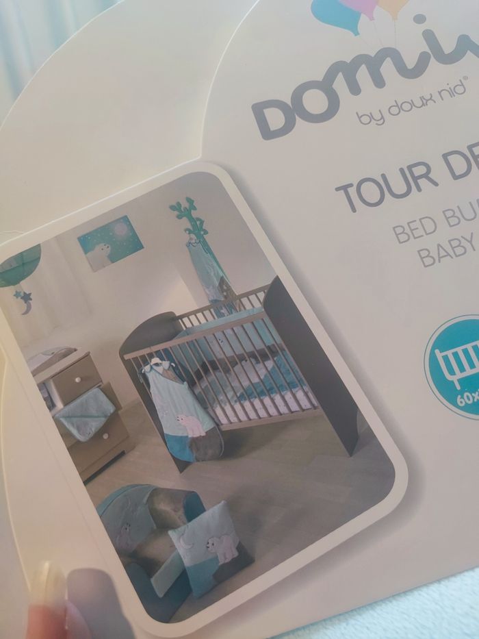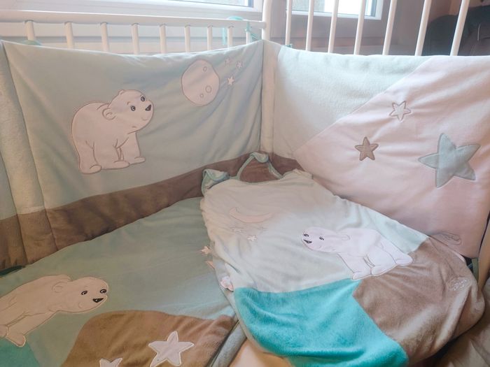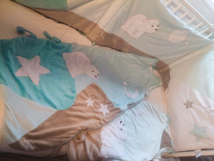 - 1 tour de lit pour lit 60x120 ou 70x140 (possibilité d'en avoir un deuxième pour 10 euros supplémentaire). Très bon état
