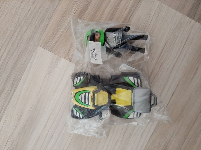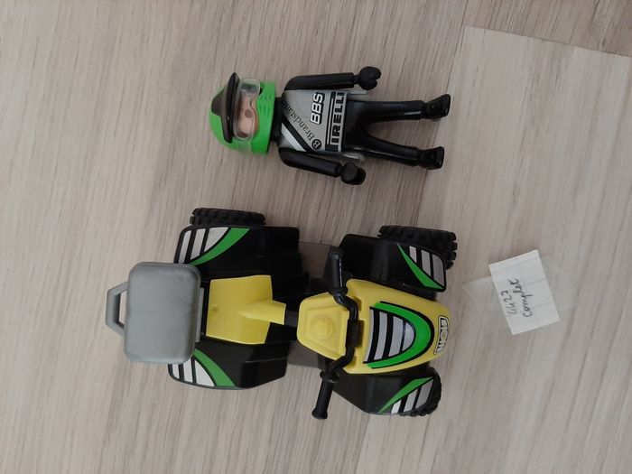 Figurine Pilote avec casque - Quad vert à friction - Valise - COMPLET.