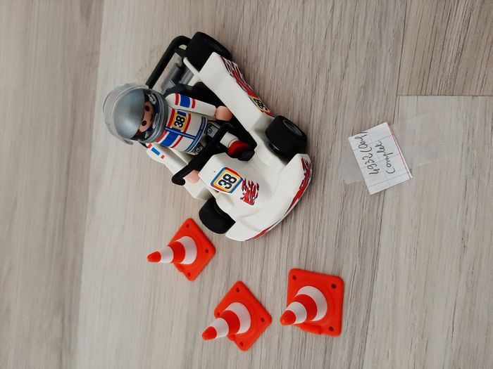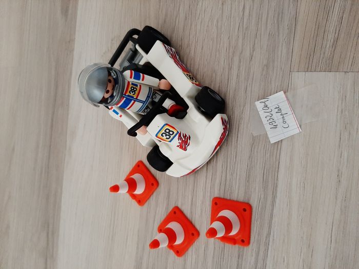 Figurine Pilote avec casque - Karting blanc - 4 cônes - COMPLET.