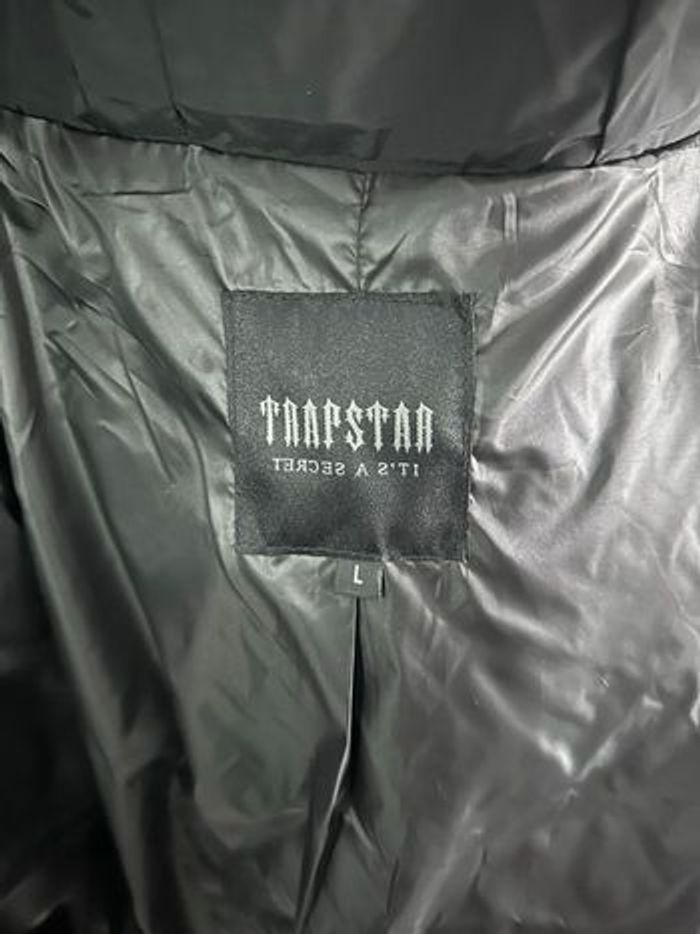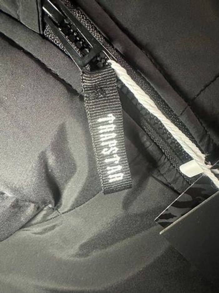 Doudoune Trapstar noire, taille L, très bonne état avec étiquette. Coupe puffer bien chaude avec capuche, logo rond « It’s a secret » sur la poitrine et grand lettrage Trapstar brodé dans le dos pour un vrai look streetwear. Intérieur matelassé 100% polyester, légère mais très isolante, parfaite pour l’hiver ou la mi‑saison. Aucune trace d’usure, fermetures et élastiques de poignets en parfait état, prête à être portée directement.