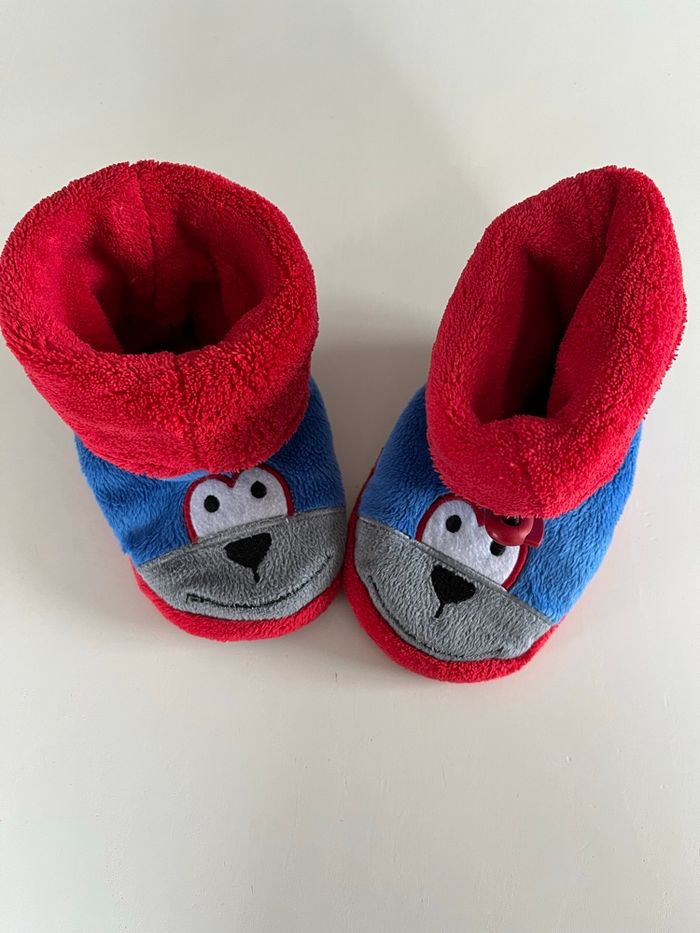 Chaussons montants bleu et rouge polaire