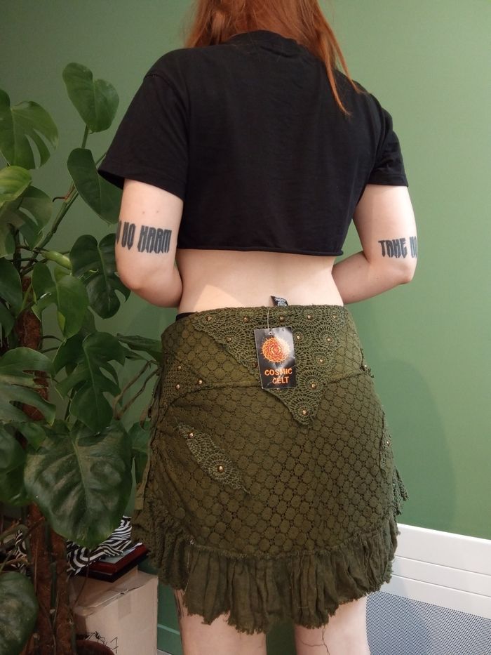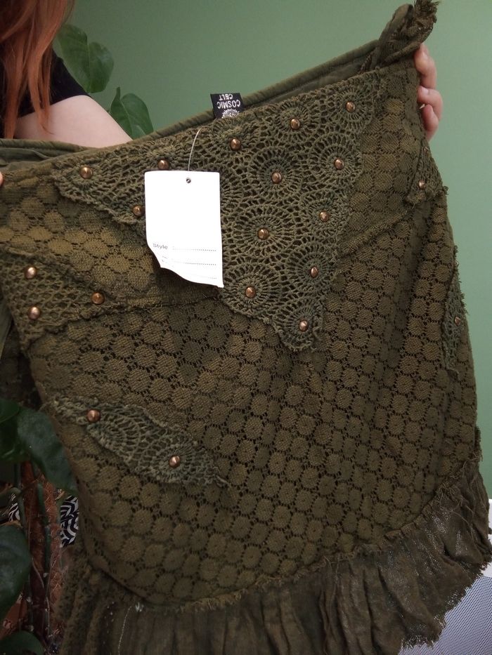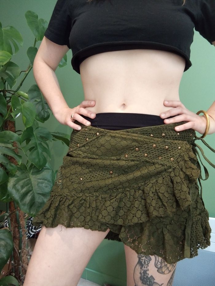 Quelques mots clés : toonzshop elf hippie alternative cute chic dentelles boho vert jupe courte asymétrique macraspirit