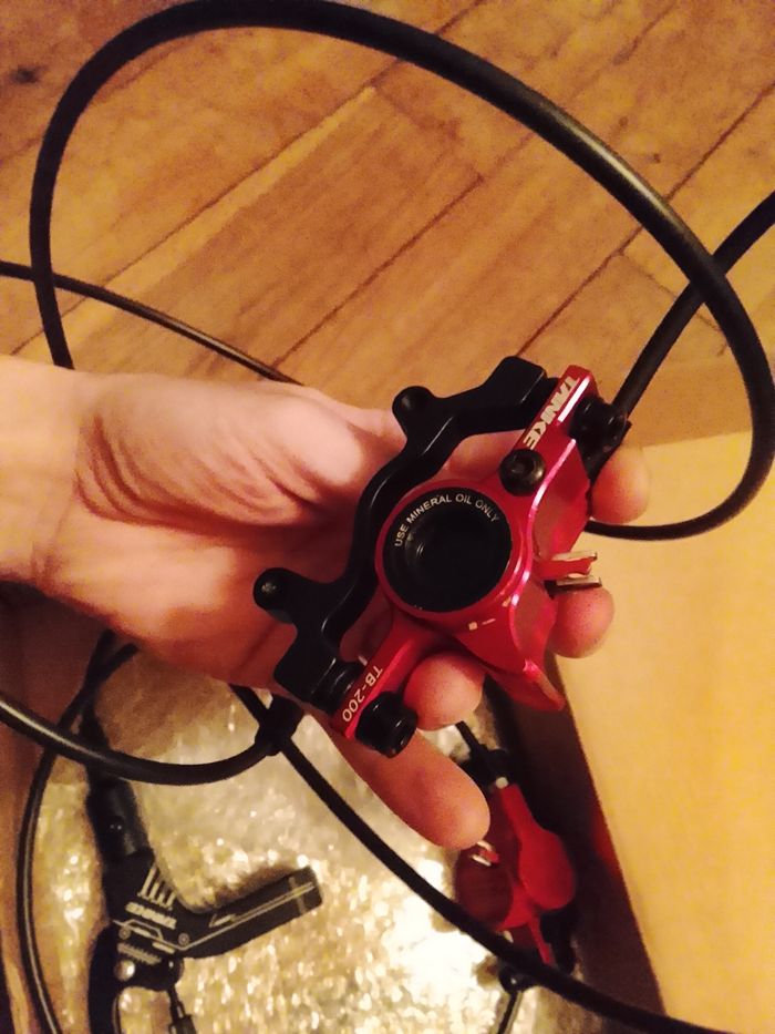 Avendre ensemble frein hydraulique AV+AR complet (poignée avec réserve hydraulique intégré+disque avc vis et étrier 2piston) disque 160mm compatible sur tout sorte de trottinette électrique/ vélo normal/vélo électrique/ etc. Avendre 60€ valeur neuf 100€!!!! tout les pièces sont neuves même pas monter ( il me fallait des capteur de frein spéciale sur mon vélo )