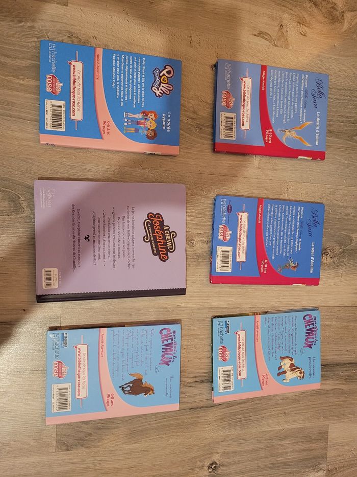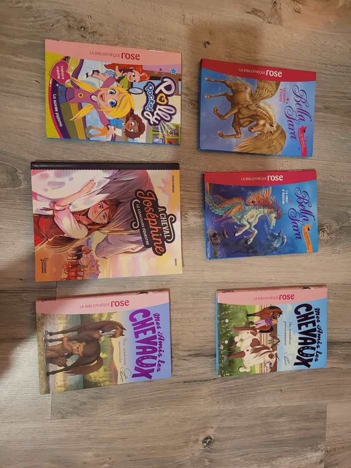 Lot livre sur la thématique des chevaux - mes amis les chevaux : un nouveau pensionnaire - mes amis les chevaux : une randonnée mouvementée - à cheval josephine : le concours équestre En cadeau : - polly pocket : la soirée pyjama - bella sara : le destin de Emma - bella sara : la sœur Adeline