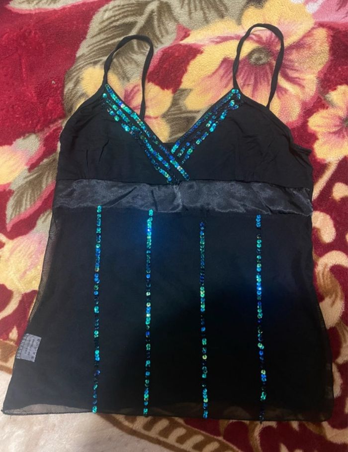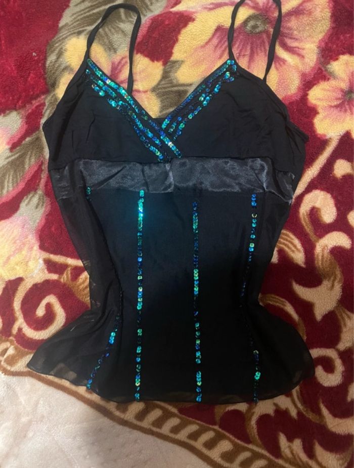 On ne le voit presque pas à la caméra mais le bas du débardeur est en résille très fin, donc c'est presque transparent. N'hésitez pas à m'envoyer un message pour plus de photos ou d'informations.