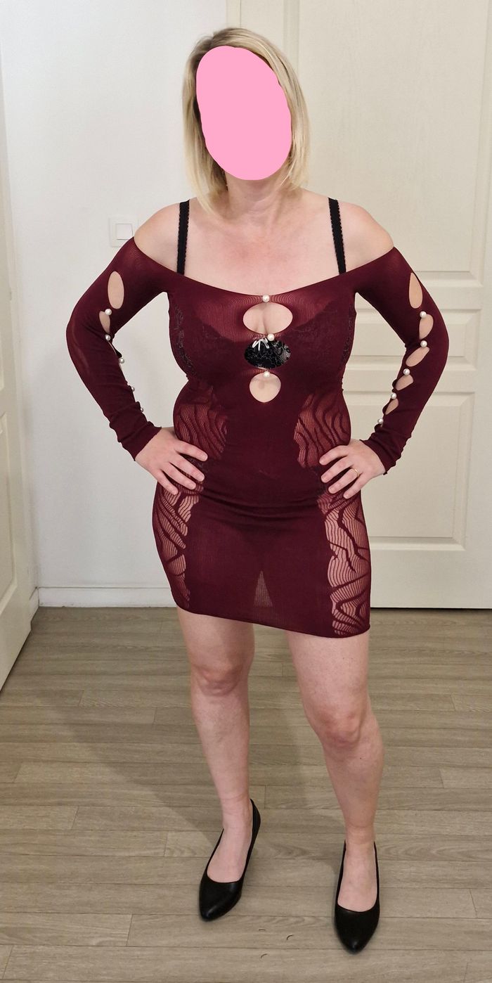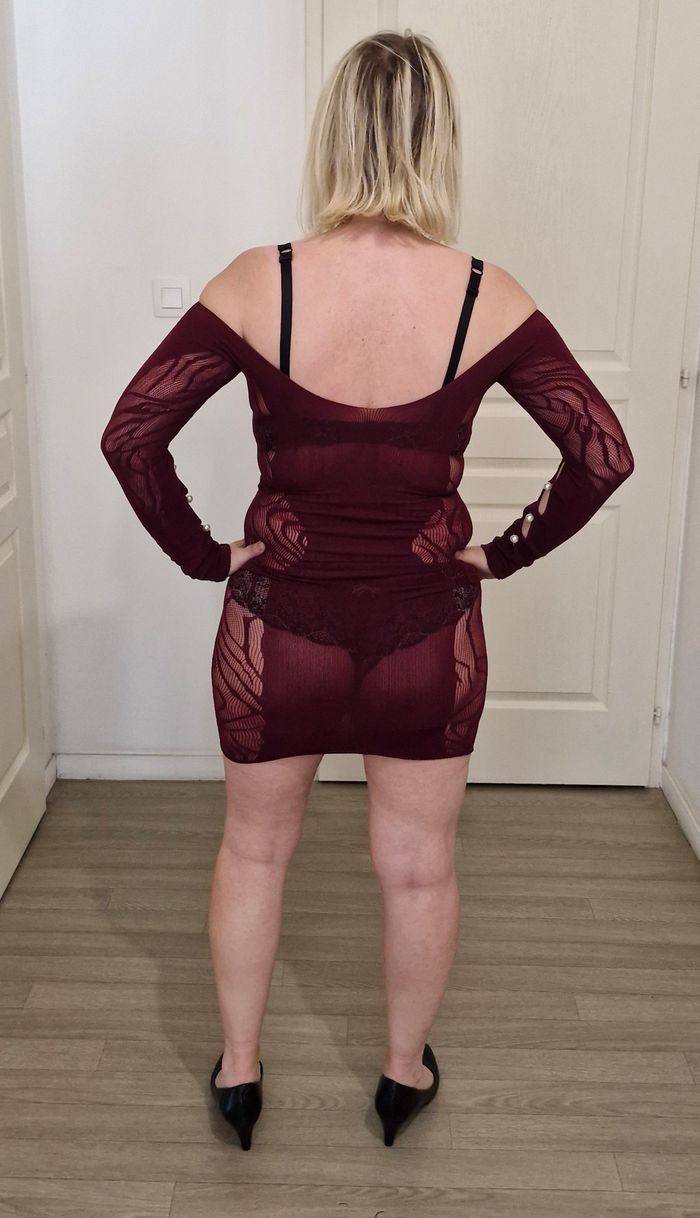 Mini robe moulante transparente en tulle, dentelle et résille super sexy