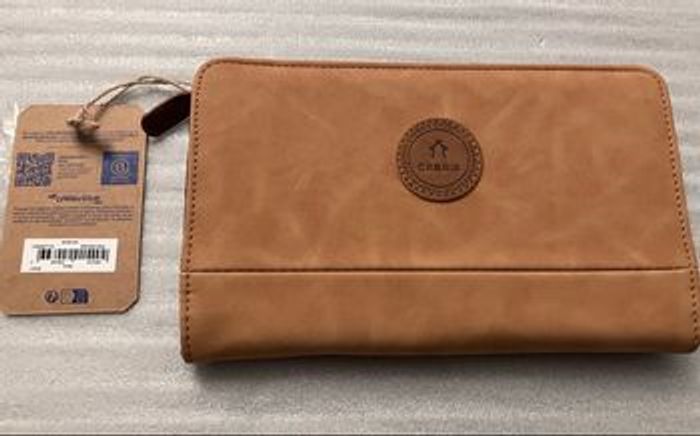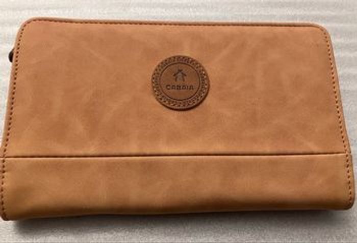 Portefeuille Taille L Marque Cabaia, modèle Moscou Couleur Camel Neuf avec étiquettes Grand dedans, discret dehors Dimensions : 21cm x 13cm x 3cm Caractéristique : Peut contenir passeport, carte d'identité et permis de conduire Garanti à vie Fermeture zippée Protection RFID Pochette intérieure zippée pour les pièces Pochette plaquée pour les billets 10 fentes pour les cartes Ouverture à soufflet Vegan et déperlant