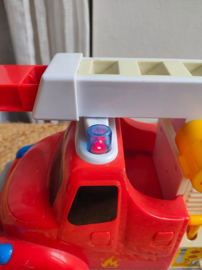 Camion de pompier 1ère âge avec son et lumière BAO Smoby. Il a été manipulé, il est en bon état, fonctionne parfaitement. Vendu sans Piles. Prix ferme, PAS DE NÉGO !!!