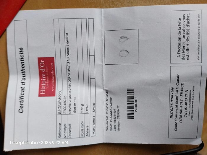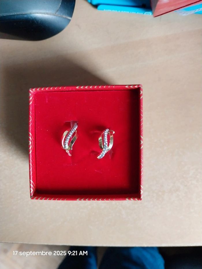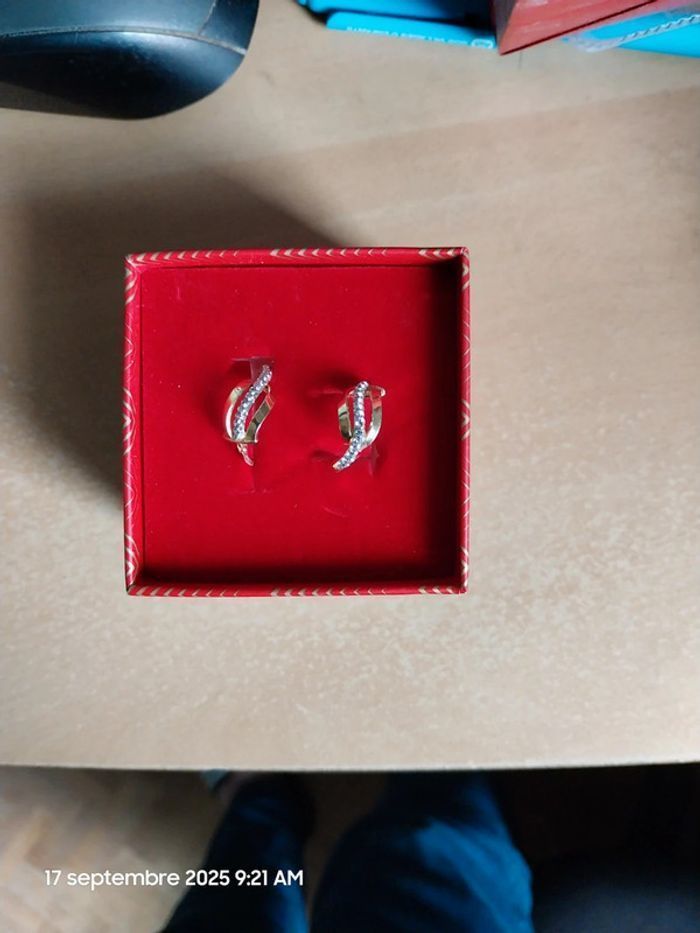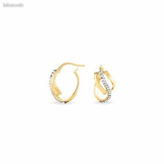 Boucles d'oreilles créoles Or Strass Ronde Résine ... - Histoire d'Or Créoles Mitica Or Jaune Strass - Histoire d'Or Certificat d'authenticité disponible NE POUVANT PLUS LEVER LES BRAS IL M'EST IMPOSSIBLE DE METTRE LES BOUCLES D'OREILLES LES BOUCLES D'OREILLES ONT JUSTE ETE ESSAYEES A LA BIJOUTEIRE, JAMAIS PORTEES ENVOI UNQUEMENT PAR MONDIAL RELAY OU COLISSIMO Créoles Or Jaune 375/1000 Trois Fils Carrés Dont Un Fil Avec Strass Largeur 2mm Diamètre 15x10mm Genre : Femme Poids total (gr) : 1.65 Matière principale : Or Couleur matière : Jaune Titrage matière : 375/1000 Typologie de créoles : Créoles Forme globale : Torsade Taille de la créole : Moyennes Diamètre intérieur des créoles (mm) : 18.20 Type de fermoir : Charnière Pierre principale Type de pierre : Strass Couleur : Blanc Forme : Ronde Type de sertis : Résine