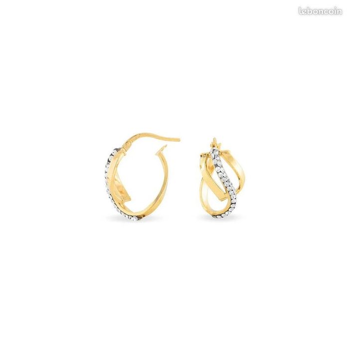 Créoles Or Jaune 375/1000 Trois Fils Carrés Dont Un Fil Avec Strass Largeur 2mm Diamètre 15x10mm