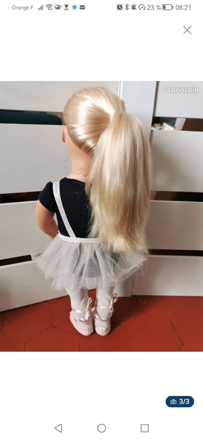 Magnifique Poupée our generation aux yeux parmes 😍. Elle porte ici sa tenue d'origine. J'ai juste changé les collants crème par des collants blancs.