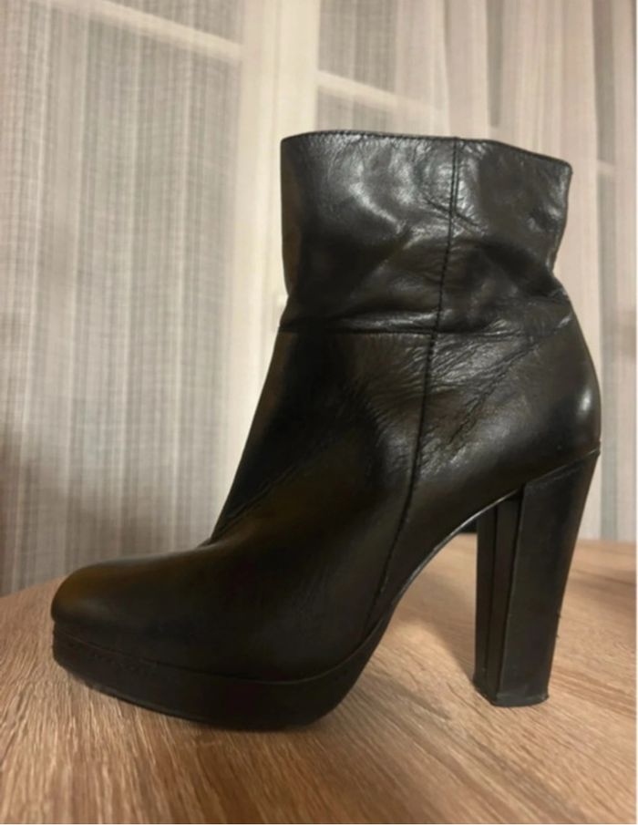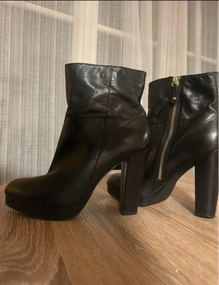 Superbes bottines en véritable cuir, elles sont très confortables avec leurs semelles plate-forme, fermeture sur le côté.