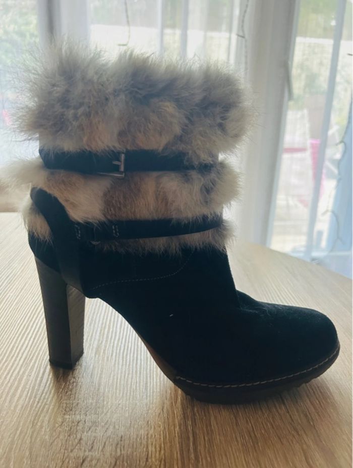 Superbes bottines à talons, très chic, cuir intérieur et extérieur, neuves jamais portées, avec semelles, plate-forme antidérapantes.
