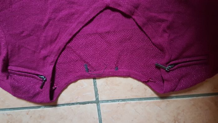 Pull fin femme Plus étiquette correspond au 38-40 Couleur bordeau Manches longues Col en V 1 petite fermeture éclair sur chaque épaule