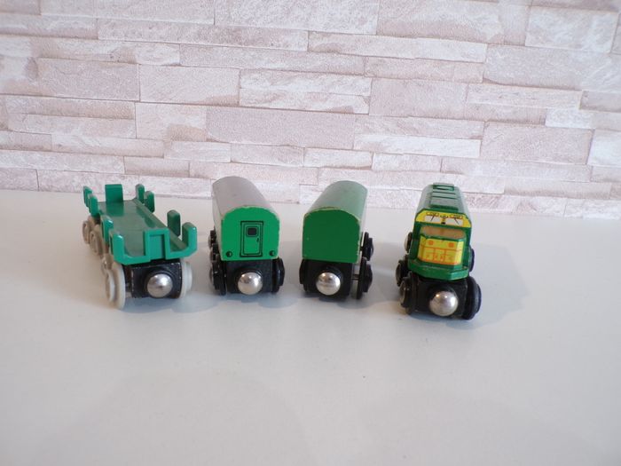 Train en bois - Wagons - Style Brio, en bon état, avec des traces d'utilisations. Convient à des circuits en bois. Mon dressing est trié par catégories, tailles et saisons pour les vêtements. #sonia222404 #jouetenfantsonia222404