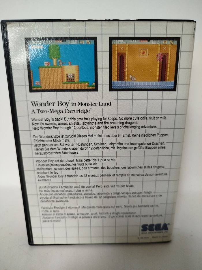 📀 Cartouche + Boîte de protection 🎮 Sega Master system ℹ️ Complet ℹ️ Boite abîmée (photo) ℹ️ Notice très abîmée (voir photo) N'hésitez pas à consulter mes autres articles pour faire des lots ! Sega, Master system, jeux vidéo, rétro gaming, collection, Wonder boy, vintage, Geek Street...