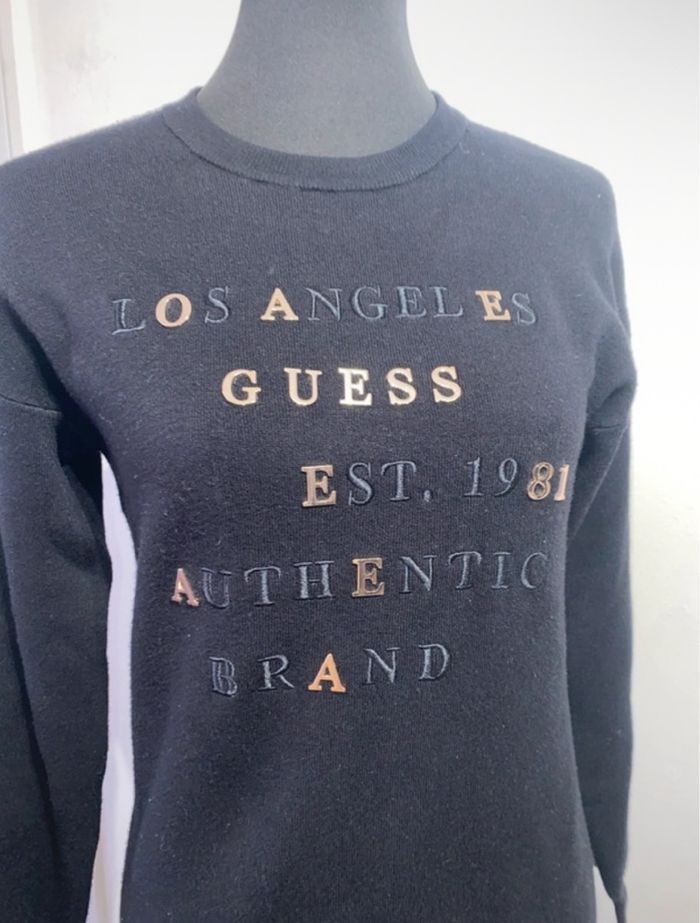Pull long Guess noir très tendance, logo brodé doré et noir sur l’avant 😍