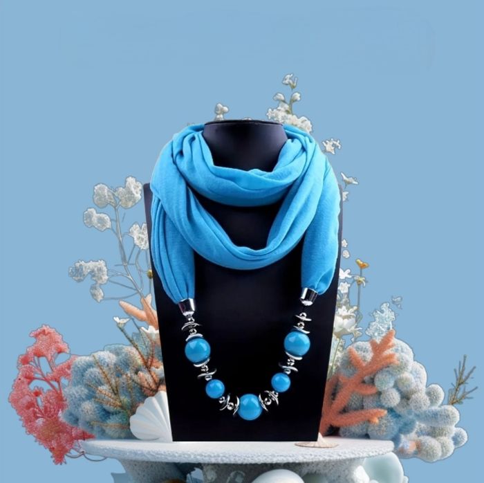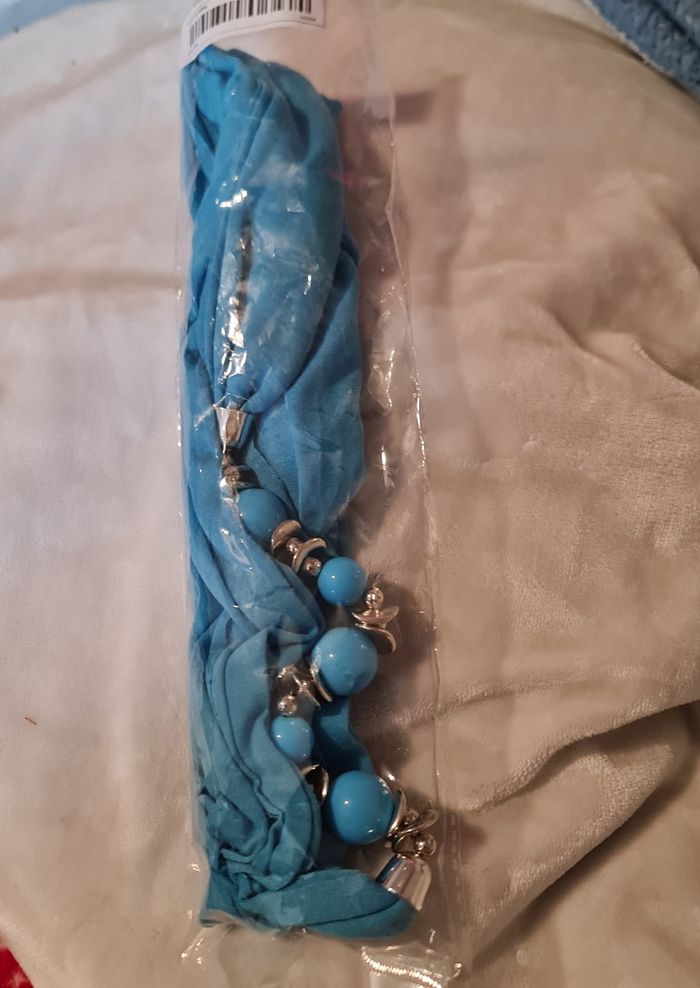 Foulard bijoux neuf. Conçu pour être porté de multiples façons, cet accessoire peut être drapé autour de votre cou, noué élégamment ou même utilisé comme une ceinture à la taille pour ajouter une touche de style à n'importe quelle tenue. Longueur :1,80