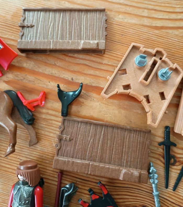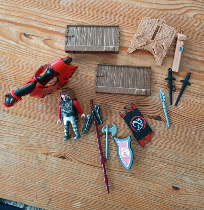Set incomplet, il manque la longe du cheval, le mat du drapeau, le casque et une des haches.