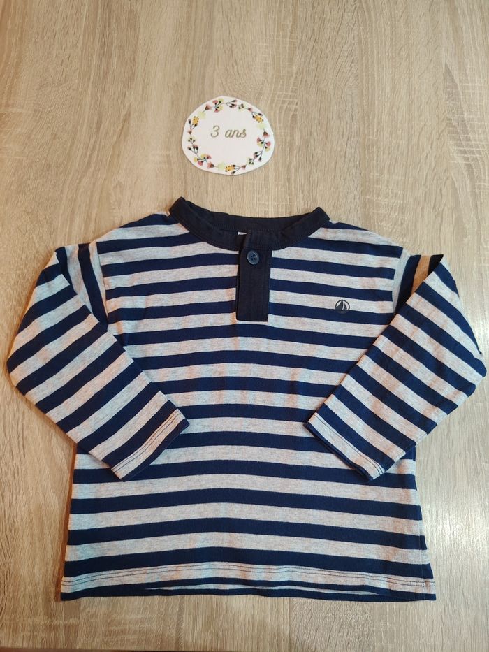 T-shirt marinière manches longues bébé garçon 36mois petit bateau tbe