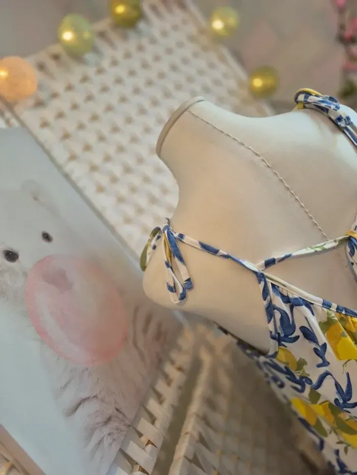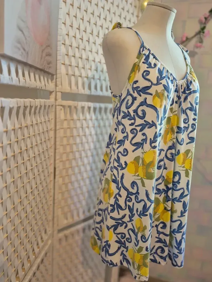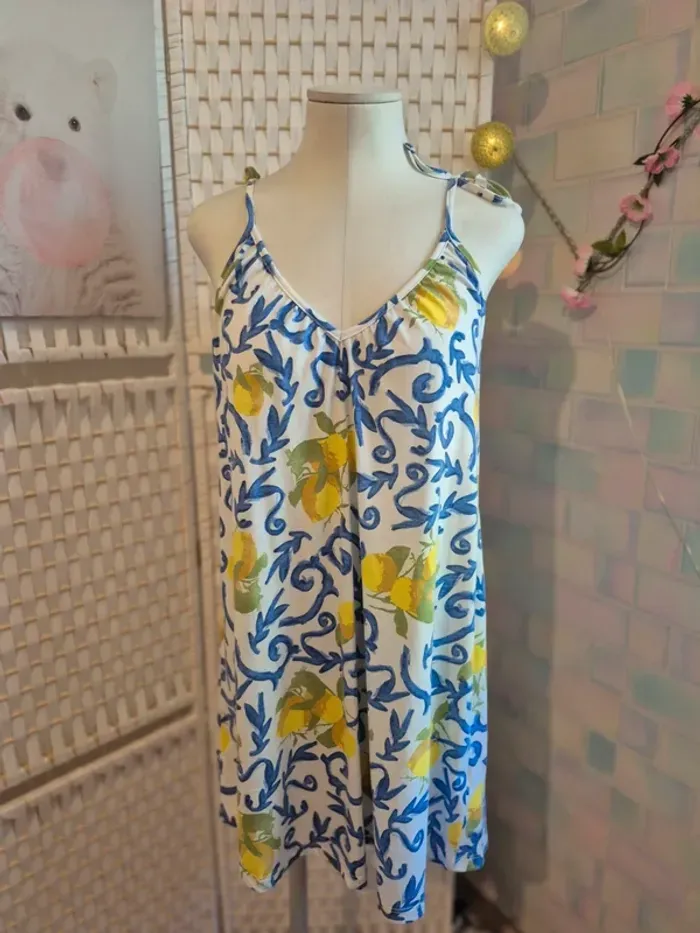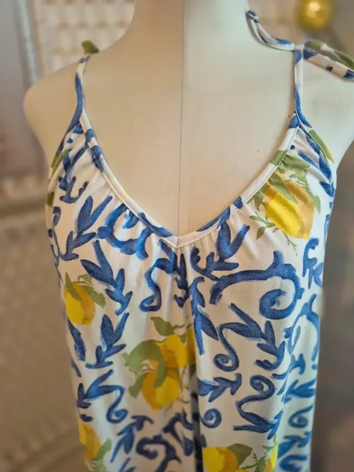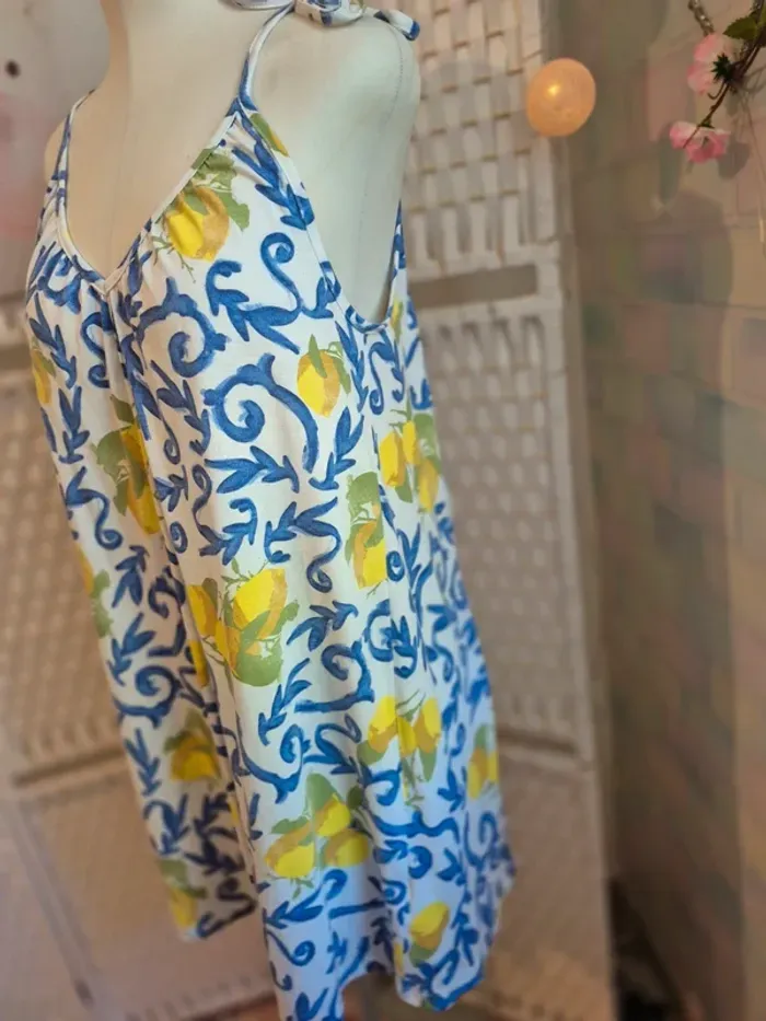 * 🍋 Superbe imprimé frais avec des citrons et des motifs bleus, style "dolce vita", parfait pour les beaux jours et les vacances !