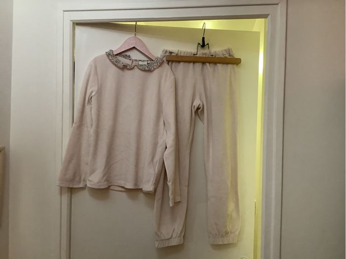 Pyjama velours rose clair avec col en Liberty Cyrillus 10 ans
