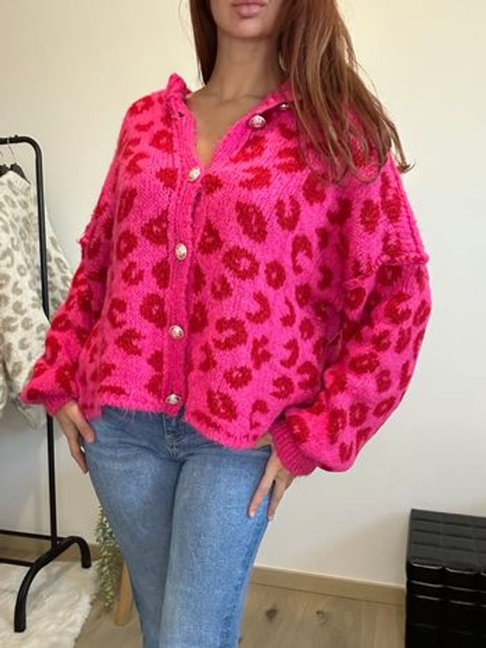 gilet léopard rose fushia