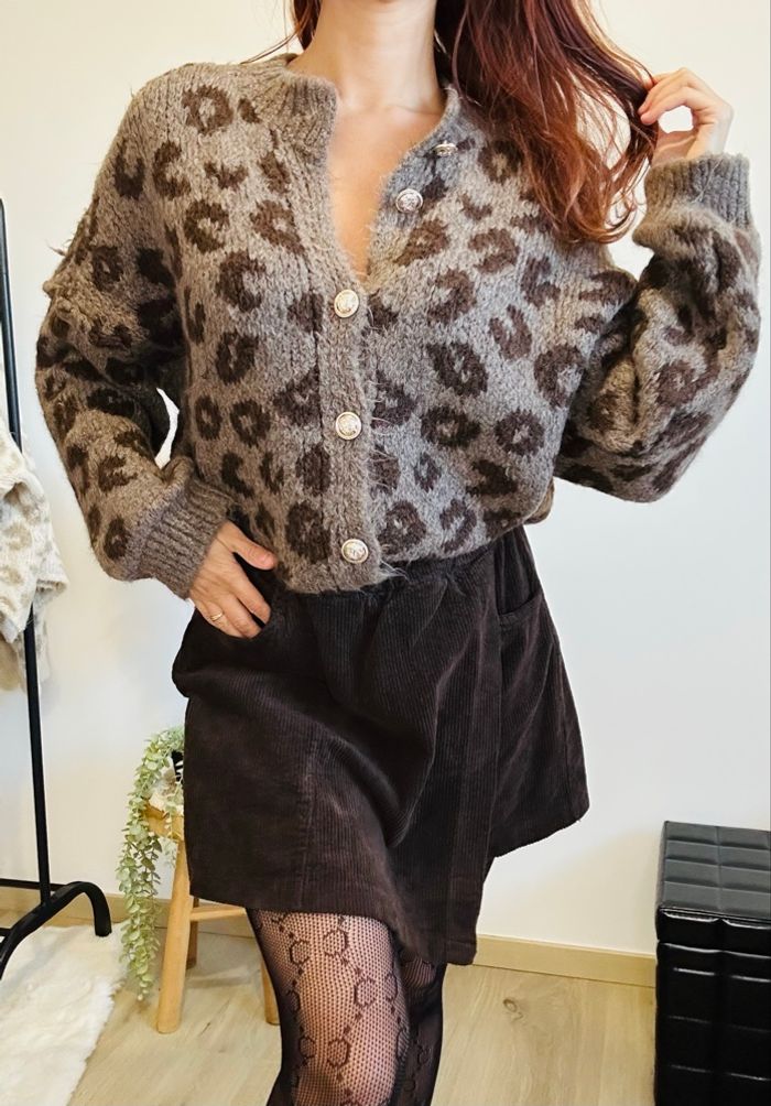 gilet pull léopard chocolat