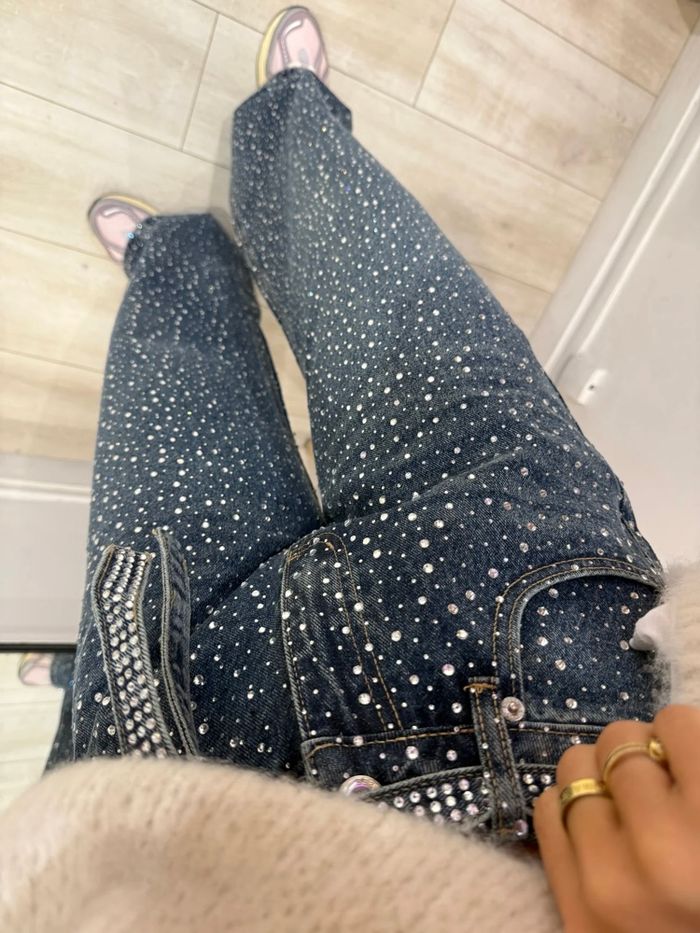 jeans strass bleu