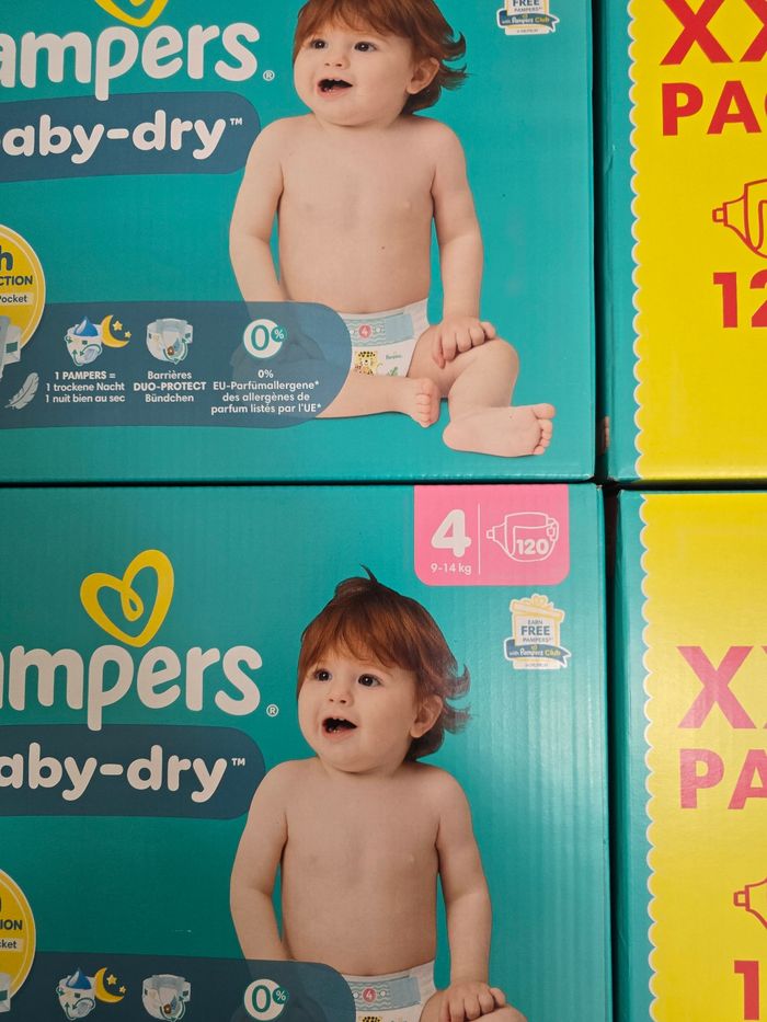 Couches Pampers Baby-Dry idéales pour le quotidien 👶✨ Confortables et adaptées aux besoins de bébé. Taille 4, conçue pour les enfants de 9 à 14 kg. Grand lot économique de 432 couches.