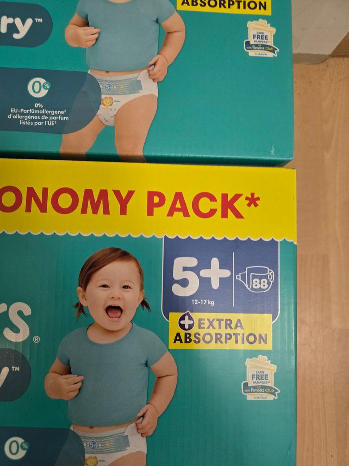 Couches Pampers Baby-Dry offrant confort et protection au quotidien 👶✨ Taille 5+, adaptée aux enfants de 12 à 17 kg. Lot pratique de 176 couches.